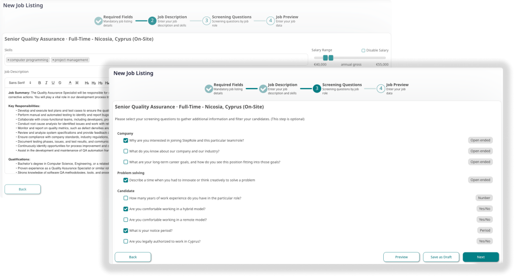 Effortlessly build and post job listings with our intuitive interface. Reach the right talent faster.